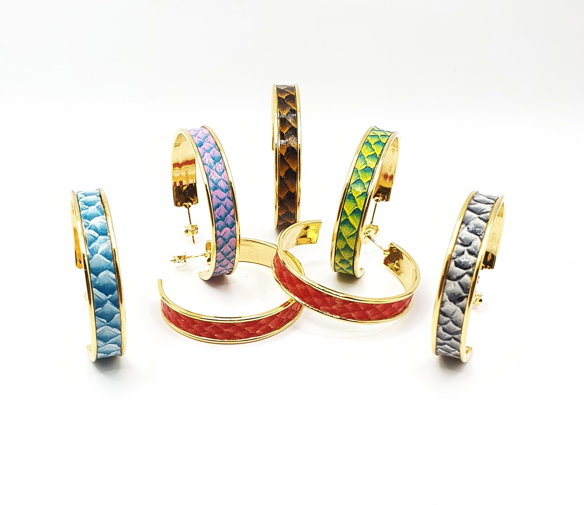 Aucun cuir de poisson ne se ressemble : Emplacement « d’écailles » plus ou moins grand, la teinte peut aussi légèrement varier d’un cuir à l’autre. De ce fait chaque bijou est unique !